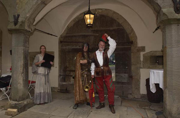 Raubritter Rottorp mit Hofmusikus und Magd zu Hülsede